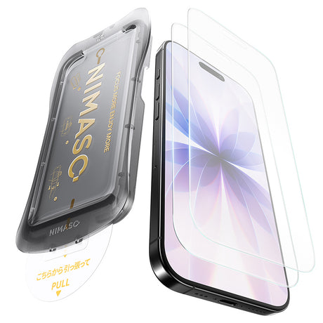 NIMASO iPhone 16/Pro/Pro Max用 「バリ楽Box」ゴリラガラスフィルム 9H+硬度 黒縁あり ガイド枠付き【2枚】