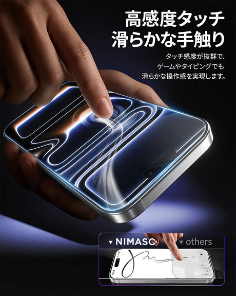 NIMASO iPhone 17/Pro/Pro Max/Air用 アンチグレア ガラスフィルム 反射防止 自動除塵ガイド枠付き 【2枚】