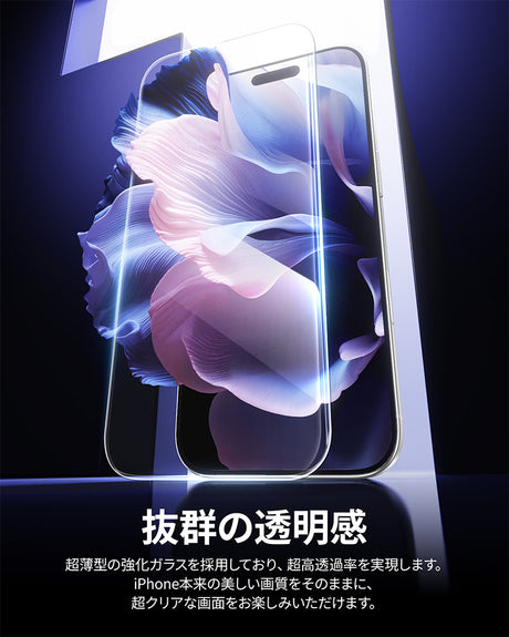 NIMASO iPhone 16/Plus/Pro/Pro Max 用 全面保護 黒縁あり 強化ガラスフィルム 自動除塵ガイド枠【2枚】