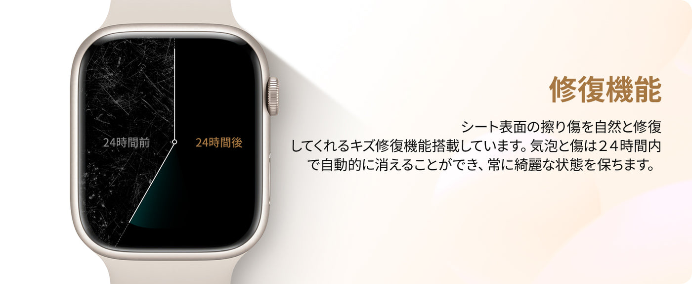 - 【キズレスと気泡レス】優れた伸縮性を持っていて、フィルム表面の細いキズと貼り付け時に小さい気泡が発生てしまった場合、通常24時間内で消えます。