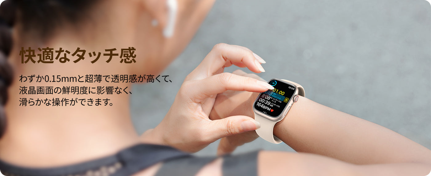 - 【高透過率&高感度タッチ】高透過率を持つ極薄TPU素材製、フィルムの装着感はゼロで、高い透明感Apple Watch画面の精細さを保ちます。高い品質なTPUで優れたタッチ感を実現します。