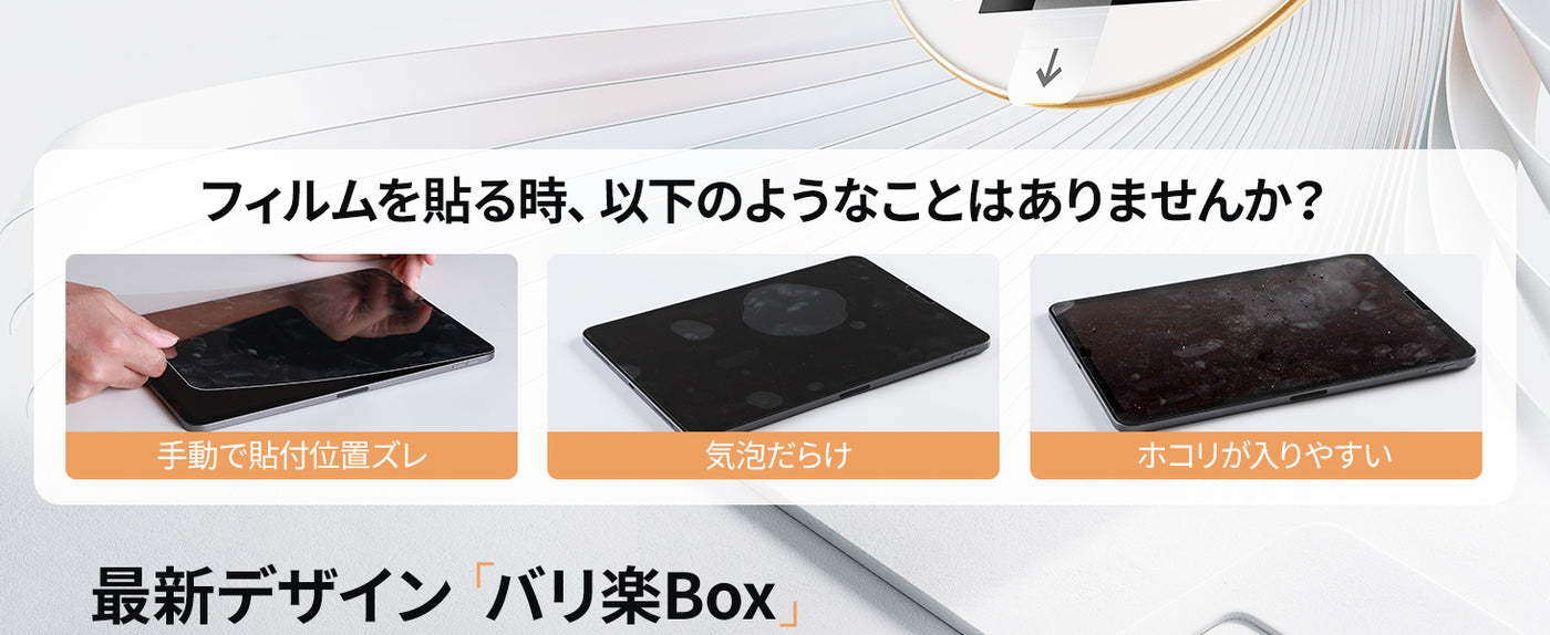 ♥自動除塵・気泡ゼロ:このipad 第9世代 フィルムはホコリと小さなゴミを自動で除塵し、粘着面保護シールを剥がした際の静電気を抑えます。また、粘着面は自然と吸着する構造になっているため、貼り付け時、気泡が入りにくく、気泡ゼロの完璧な貼り付けを実現可能にしました。(*iPadの画面サイズが広いため、気泡が取り除く時間がかかります。台紙を全部引き出したら、15秒間そのままお待ちください。)