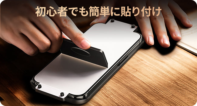 • 【貼り付け簡単】今までのガイド枠と違い、この「魔法のツール」にスマホとフィルムを順に置いてから、付属のヘラで押して密着させるだけで貼り付け完了です。