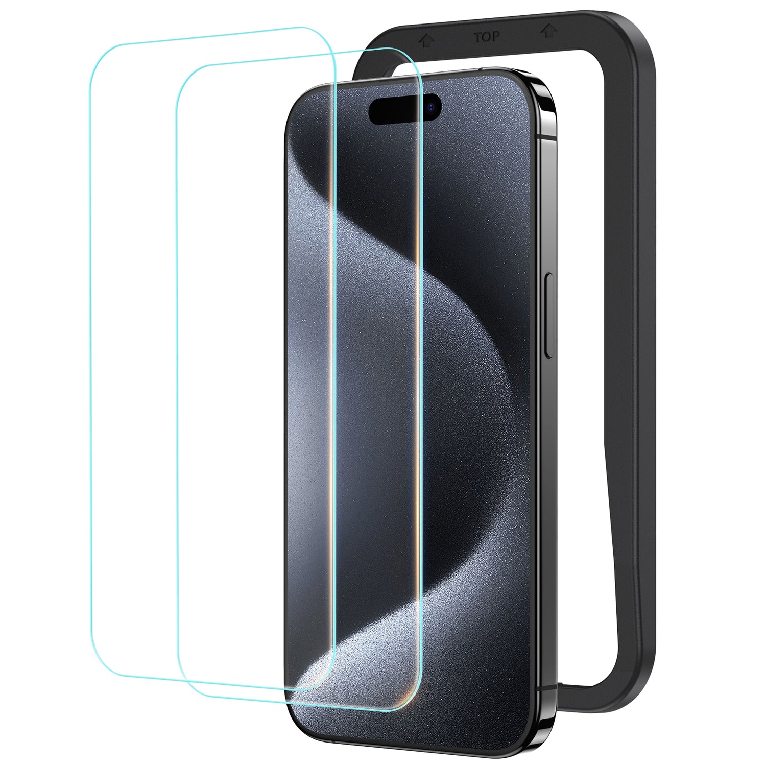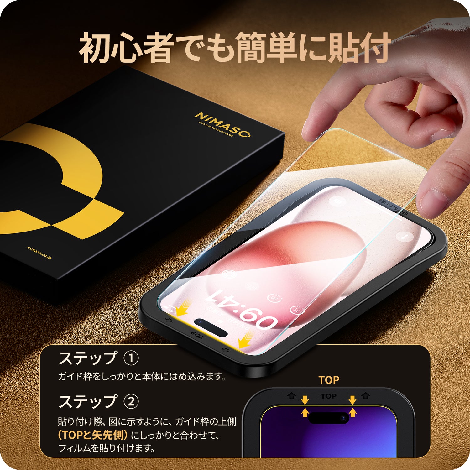 NIMASO ガラスフィルム iPhone 15/Plus/Pro/Pro Max用 光沢仕様 ガラスフィルム ガイド枠付き 【2枚】