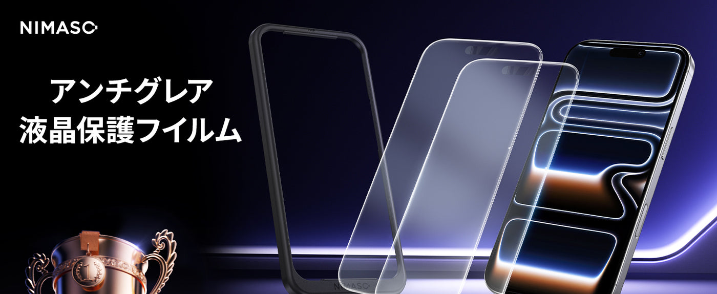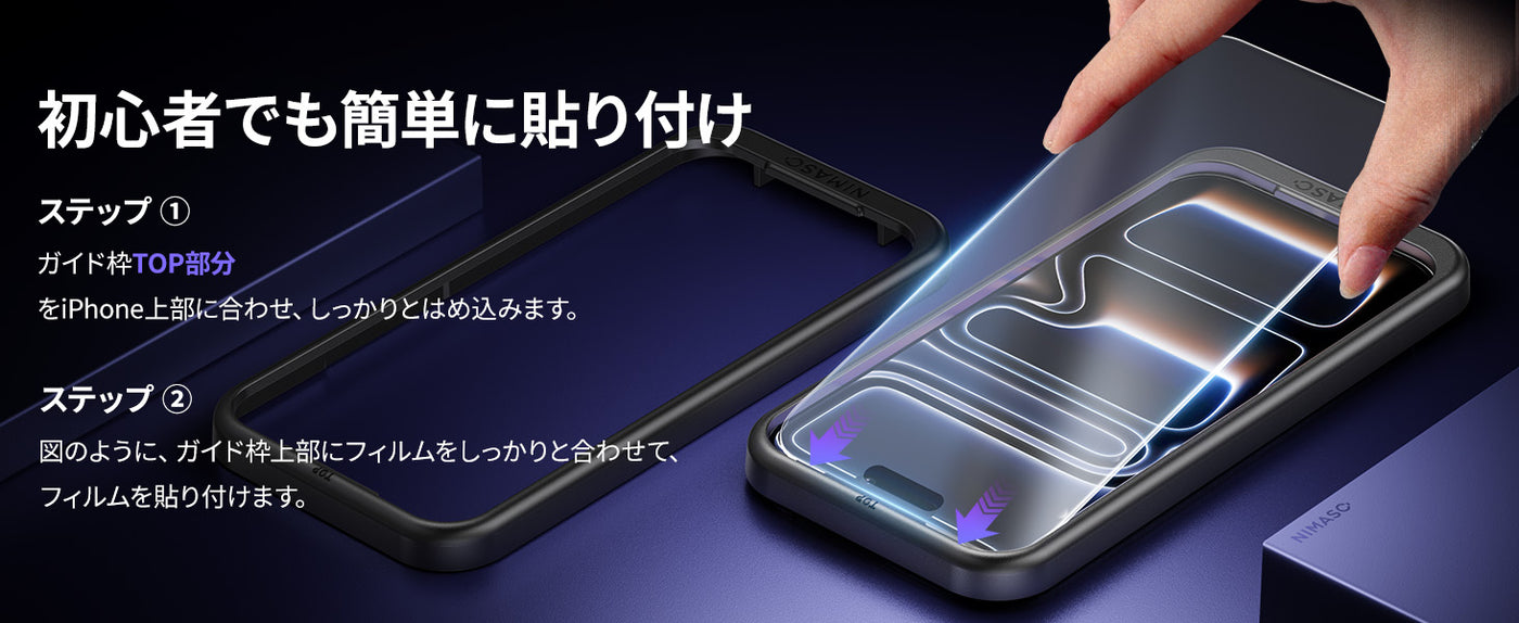 NIMASO iPhone 17/Pro/Pro Max/Air用 アンチグレア 強化ガラスフィルム 指紋防止 ガイド枠付き【2枚】