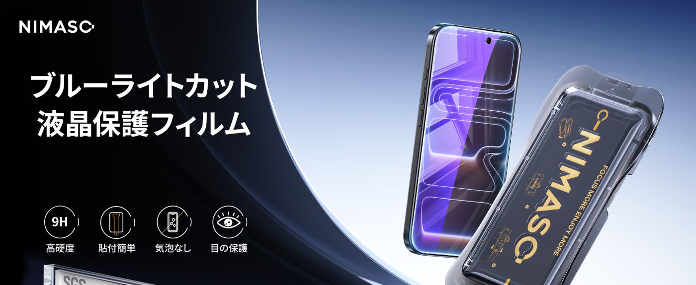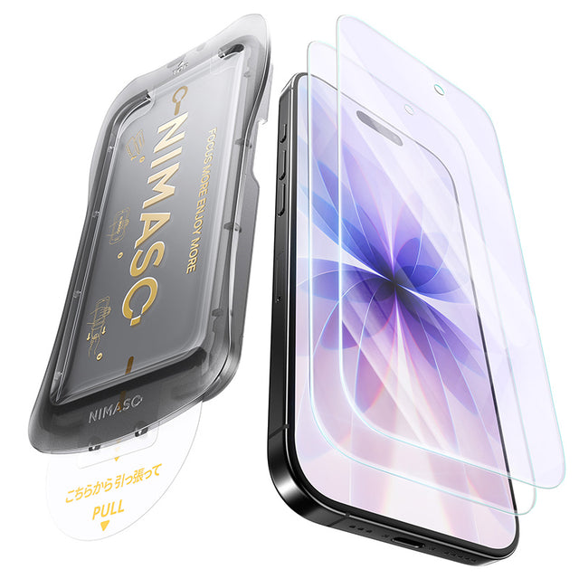 NIMASO iPhone 17/Pro/Pro Max/Air用 ブルーライトカット 強化ガラスフィルム 目の疲れ軽減 自動除塵ガイド枠 【2枚】 - iPhone 17 ...は取り寄せ中で入荷次第発送します。