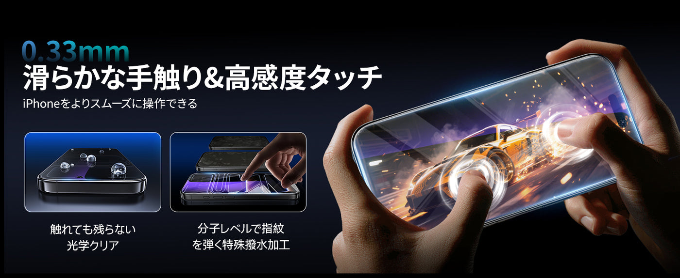- 【指紋防止/汚れ防止・なめらかな手触り】本製品は撥水撥油のAF(Anti-Fingerprint)コーティング加工とスムースタッチ加工により、指紋や汚れがつきにくく、油分や水分が強く付着した汚れも拭き取るだけで綺麗になります。また?使用時の手触りも滑らかで?動画視聴、仕事、勉強、ゲームなどのあらゆるシーンでも、常に美しいあいふぉん17の画面をお楽しみいただけます。