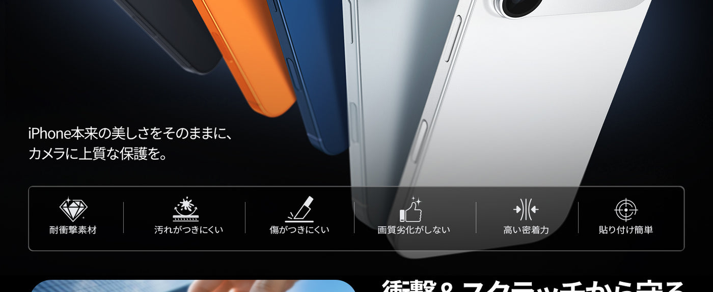 - 【iPhone本来の高画質を楽しむ】本製品はカメラ覆う部分に黒縁取りをした設計を使用しています。露出才一バ一を防ぎ、昼夜を問わず適度な明るさで画像を撮影できます。