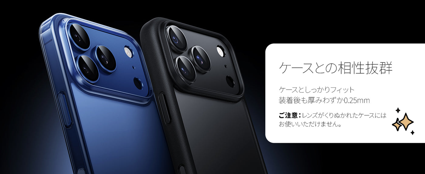 - 【ぴったりフィットする一体感・ケースと干渉しない】アルミニウム合金の部分はブラックマットに仕上げており、本体と同じ色にすることであいほん17/あいほん16/16Plus本体との一体感を強く演出できる製品です。また、レンズカバーもカメラレンズに合わせて正確に設計されているので引っかかる感じがなく、ほとんどのケースと干渉しません。