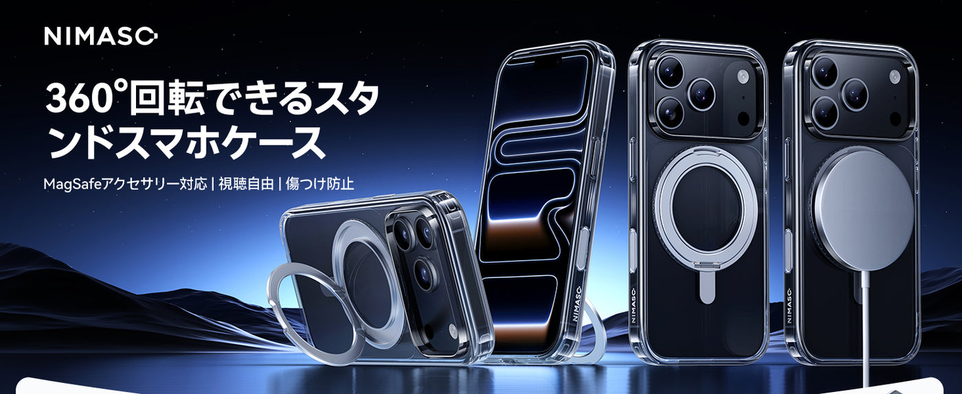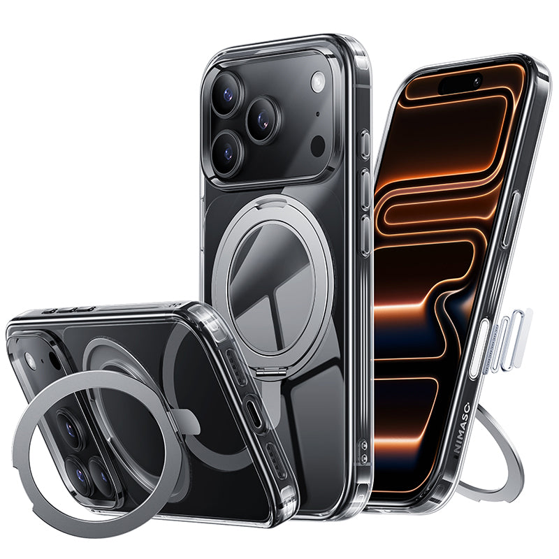 NIMASO iPhone 17/Pro/Pro Max/Air用 360°回転スタンドケース クリア MagSafe対応 耐衝撃 黄変防止(氷星シリーズ)