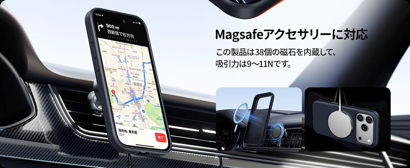 - 【最新MagSafe対応・強力な磁力で吸着】iPhone 17 ケース内部に38個の強力なN52マグネットを搭載しており、一瞬でピッタリとくっつき、高速充電を実現します。最新のMagSafeデザインを採用しているので、すべてのMagSafeアクセサリー(ワイヤレス充電、モバイルバッテリー、車載スタンド、スタンド、リング)と互換性があります。