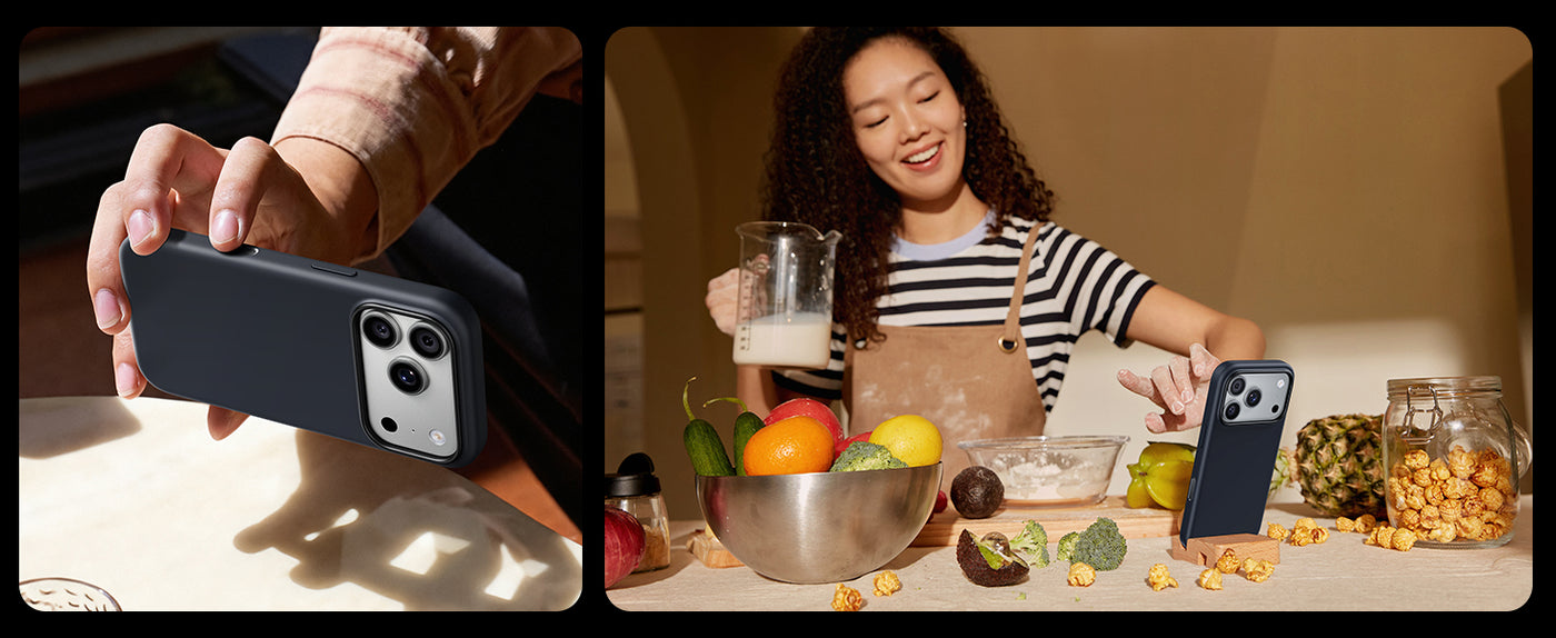 - 【フルアップグレード!カメラボタンまで保護】新たにカメラコントロールボタンを覆う専用保護カバーが追加されました。ケースを装着したままでもスムーズに操作でき、スライドしても押しても、その反応は本体と変わらない精密なタッチレスポンスを実現します。ボタン部分を完全に覆うことで、塵をシャットアウトでき、精密センサーをしっかり保護します。