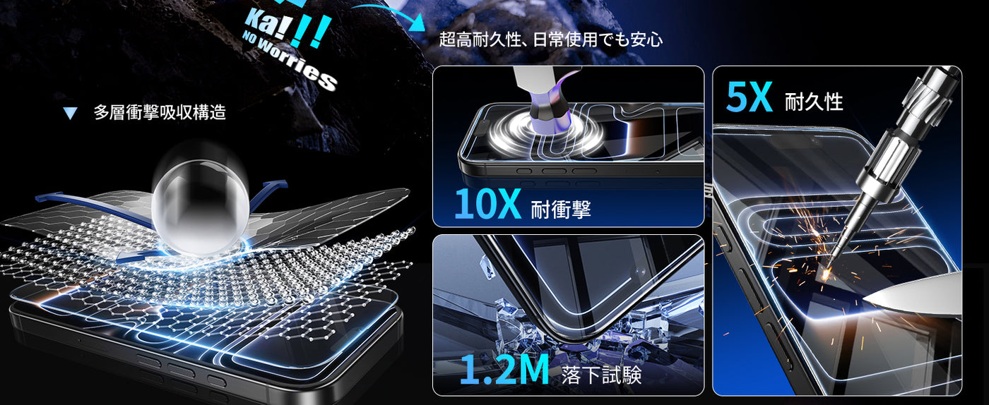 - 【軍用規格レベルの強度・飛散防止】米軍規格MIL-STD-810H認証(SZXEC23002005001)を取得した9H硬度ガラスを採用、鞄やポケットのなかで、鍵などの鋭いものにぶつかっても傷が付きにくく、アイフォン17をしっかり保護します。飛散防止加工により、万一割れてもガラス破片が飛び散ることなく安心です。