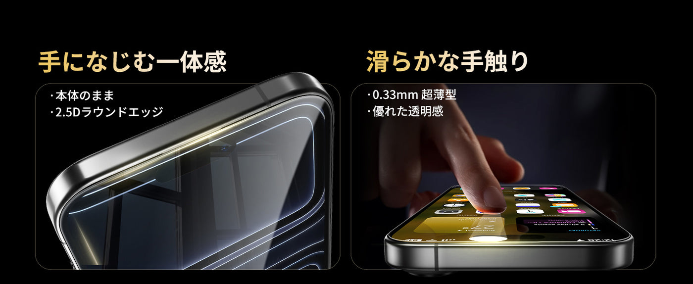- 【超高透過率・高感度タッチ】厚さ0.33mmの超薄型で、透過率は99.99%。驚くほど高い透明度を誇っており、画面の鮮明さや美しさを損なわずにあいふぉん17本来の美しい画面をお楽しみいただけます。画面上の操作も違和感なくスムーズに行えます。
