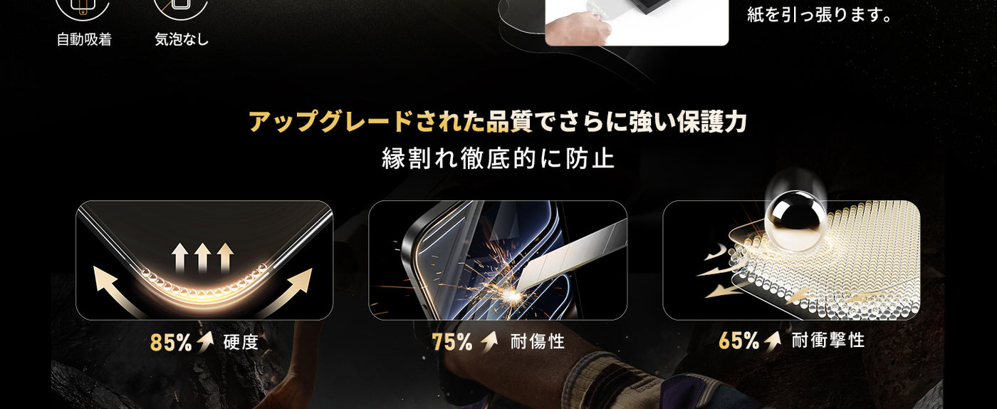 - 【9H硬度・飛散防止】米軍規格【MIL-STD-810H】に準拠(認証番号:SZXEC23002005001)。9H硬度のガラスを採用。小刀や鍵などの鋭いものにぶつかっても傷が付きにくく、いpほね17をしっかり保護します。飛散防止加工により、万一割れてもガラス破片が飛び散ることなく安心です。