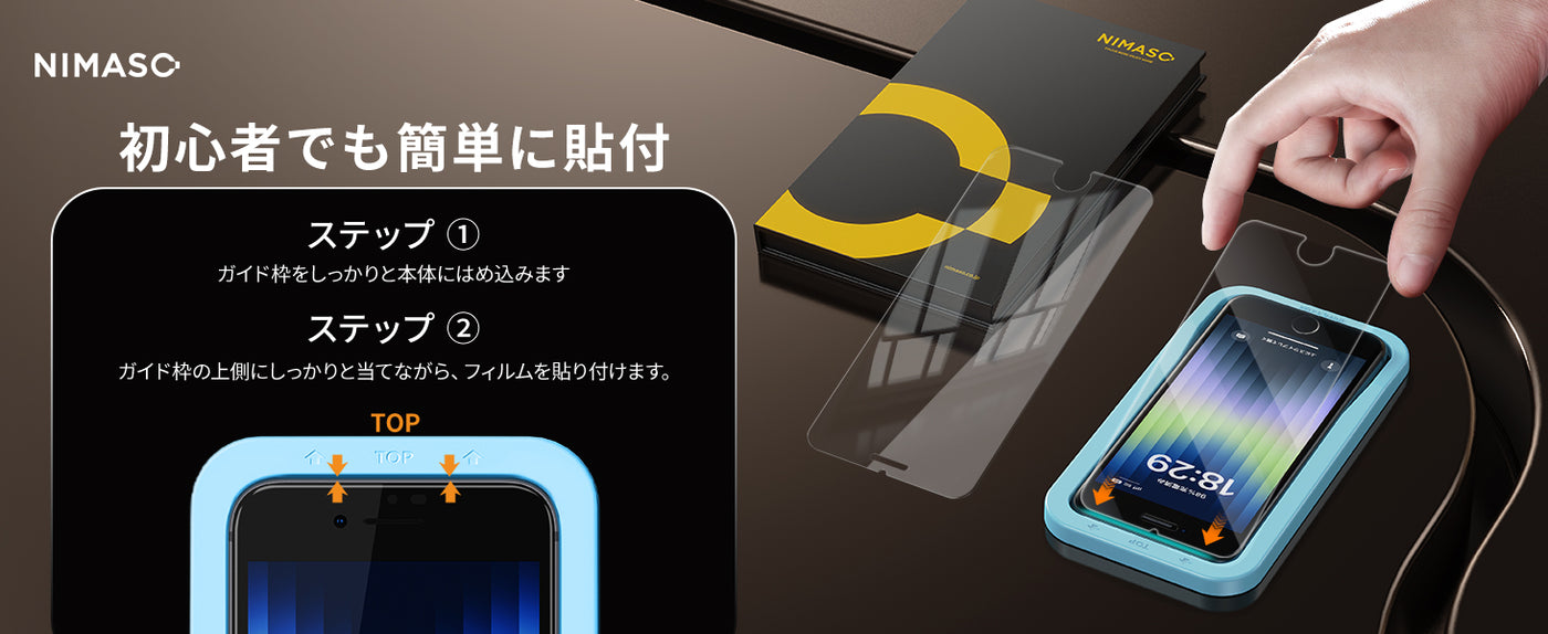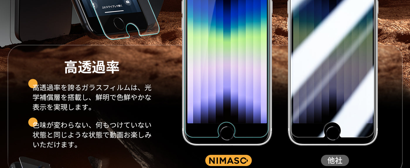 NIMASO ガラスフィルム iPhone SE2/SE3用【割れにくい】高光沢 ガイド枠付き2枚入り