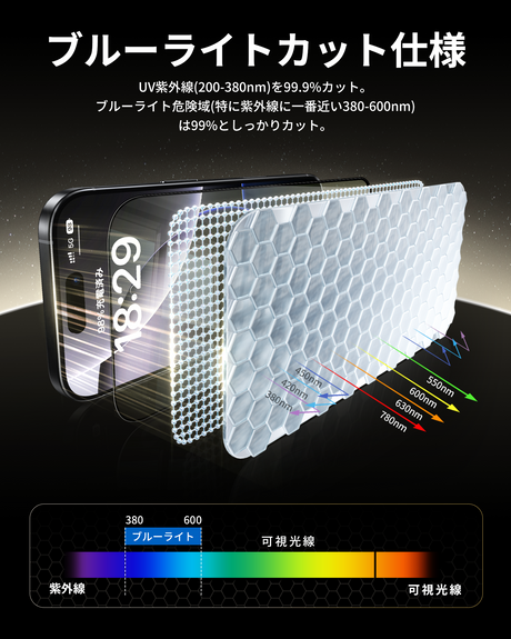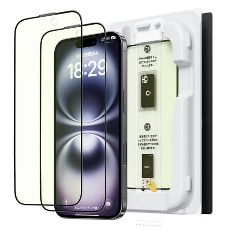 NIMASO iPhone 16 Plus/16 Pro/16 Pro Max 用 「バリ楽Box」ブルーライトカット 強化ガラスフィルム 黒縁あり ガイド枠付き【2枚】
