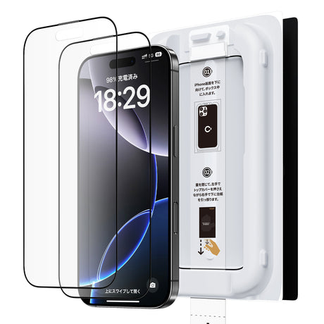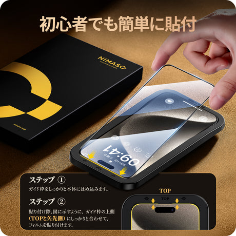 NIMASO ガラスフィルム iPhone 11/11 Pro/11 Pro Max/12/12 Pro/XR/X/XS/XS Max用 黒縁あり 高光沢 ガイド枠付き 2枚入り