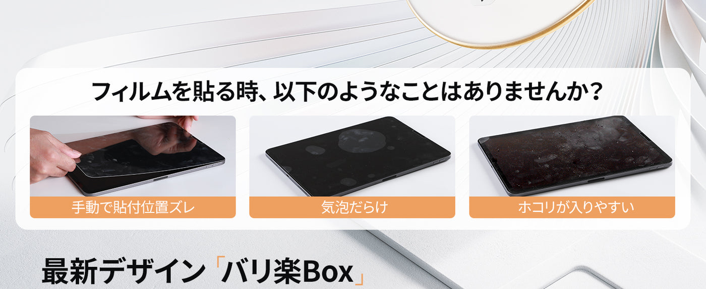 - 【自動除塵・気泡ゼロ】このipadミニ6/ミニi(A17 Pro) 保護フィルムはホコリと小さなゴミを自動ではホコリと小さなゴミを自動で除塵し、粘着面保護シールを剥がした際の静電気を抑えます。また、粘着面は自然と吸着する構造になっているため、貼り付け時、気泡が入りにくく、気泡ゼロの完璧な貼り付けを実現可能にしました。(*iPadの画面サイズが広いため、気泡が取り除く時間がかかります。台紙を全部引き出したら、15秒間そのままお待ちください。)