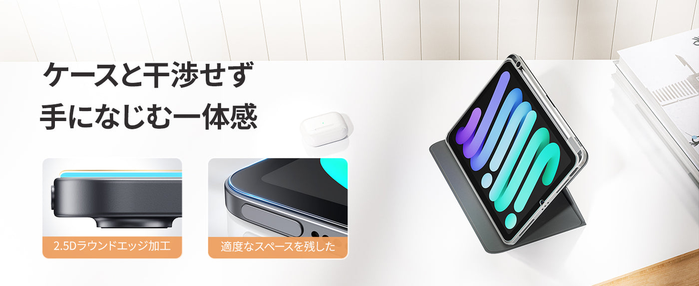- 【ケースと干渉せず】 ipadケースに対応させるため、ガラスフィルムはスクリーンよりやや小さいように設計されています。スクリーンにもっと密着することもできます。ケースとの干渉を気にする必要はありません。