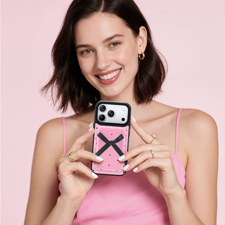 NIMASO MagSafe対応ウォレット カードケース リボン ピンクスマホ