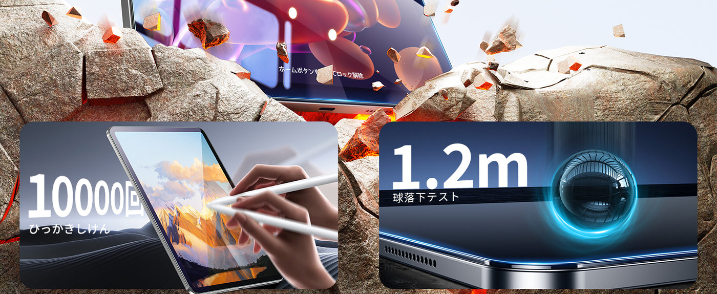 • 【高品質日本製素材】 9H硬度を持つガラスにハードコーティングが施されることにより、外部からの衝撃をフィルムが吸収し、画面へのダメージを最低限まで抑えました。