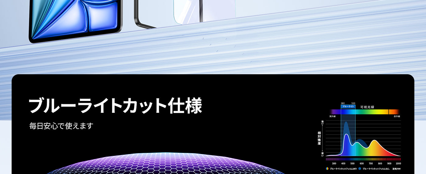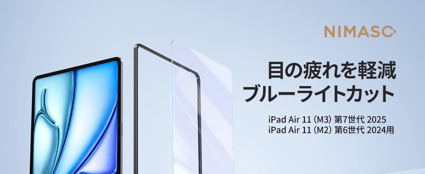 - 【ブルーライトカット機能】iPad Airは高輝度、高コントラストのスクリーンに長時間見ていると、目の疲れにつながり、乾燥、ひりひりするなどの不快な症状が現れることがあります。NIMASOの先進ブルーライトカット反射技術によりブルーライトを大幅にカットでき、目に掛かる負担を軽減しましょう。ディスプレイを長時間ご覧になる方におススメです。ブルーライトカット商品ですので、特徴な構造で画面は角度によって、淡い黄色、青紫色に見えます。予めにご了承ください。
