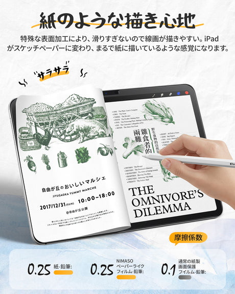 NIMASO ペーパーライクフィルム iPad Pro 11インチ用 M5 2025/M4 2024年 アンチグレア 反射低減 指紋防止 紙のような描き心地 位置決めガイド付き