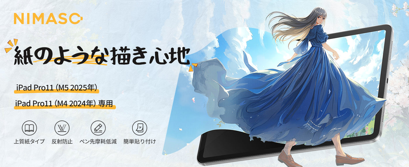 NIMASO ペーパーライクフィルム iPad Pro 11インチ用 M5 2025/M4 2024年 アンチグレア 反射低減 指紋防止 紙のような描き心地 位置決めガイド付き - iPad Pro 11インチ(2025/2024) ...は取り寄せ中で入荷次第発送します。