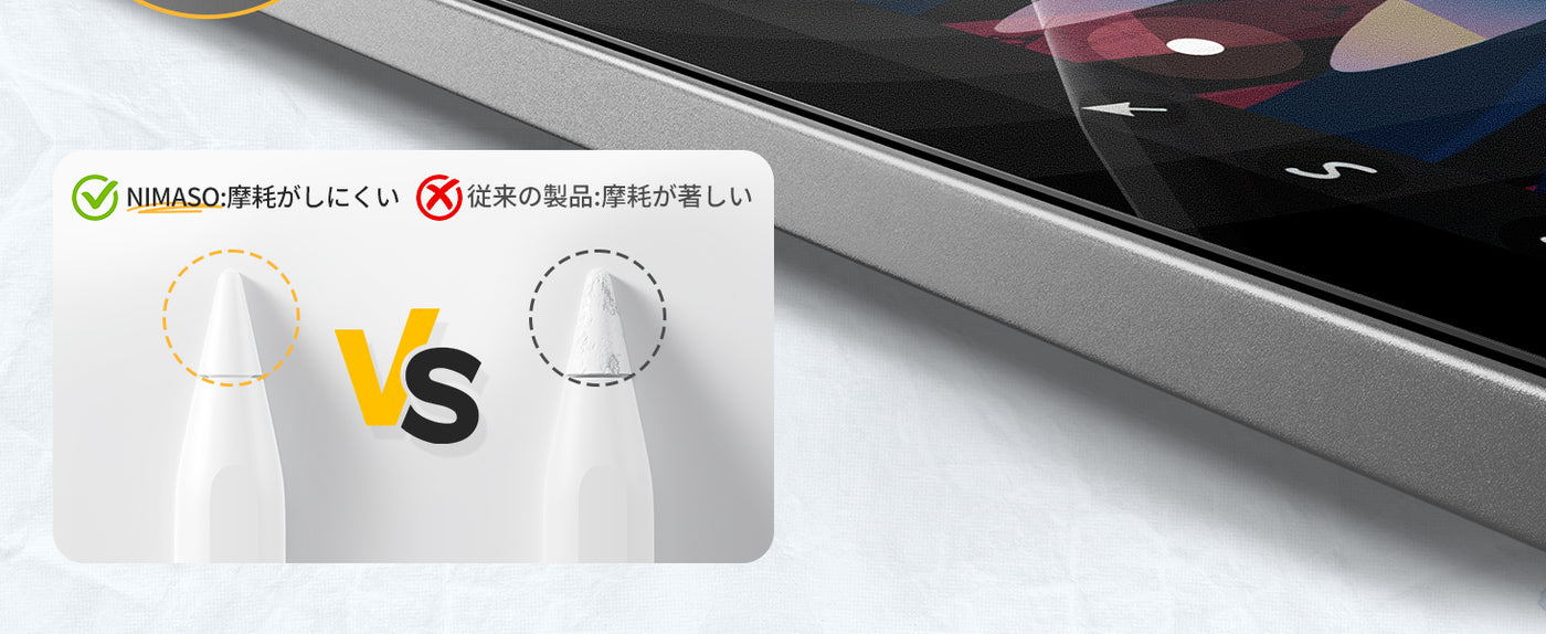 Apple Pencil ペン先 摩耗しにくい フィルム設計により、ペン先の消耗を抑え、長く快適に使用できます。
