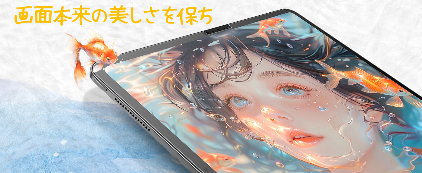 • 【アンチグレア機能・指紋防止】表面には光を乱反射させ、ギラツキを抑えるアンチグレア加工が施されています。目に優しく、長時間のイラスト制作でも、映り込みやチラつきを気にすることなく作業に没頭できます。さらに、指紋防止加工によって、指紋や水滴の付着を防いで落としやすくするフッ素コーティングや、日常使用による擦り傷から画面を守る表面硬度3Hのハードコート加工も施されています。