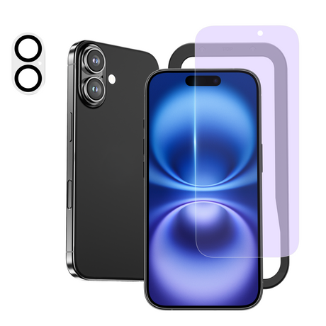 NIMASO iPhone 16用 ブルーライトカット 強化ガラスフィルム(1枚)+カメラフィルム(1枚) ガイド枠付き 硬度9H