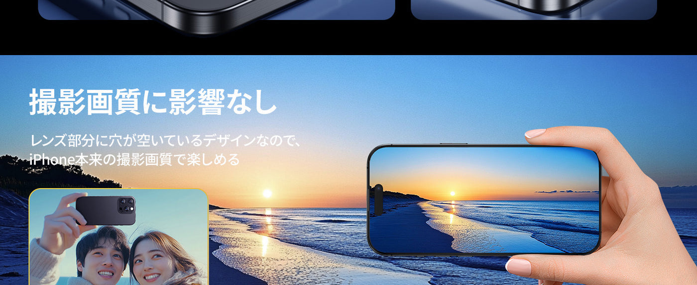 9H表面硬度|アルミニウム合金製|キズ防止|ケースと干渉しない|強化ガラス|指紋防止|気泡ゼロ|耐衝撃性|露出オーバー|高透過率|黒縁取り