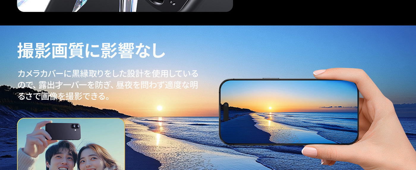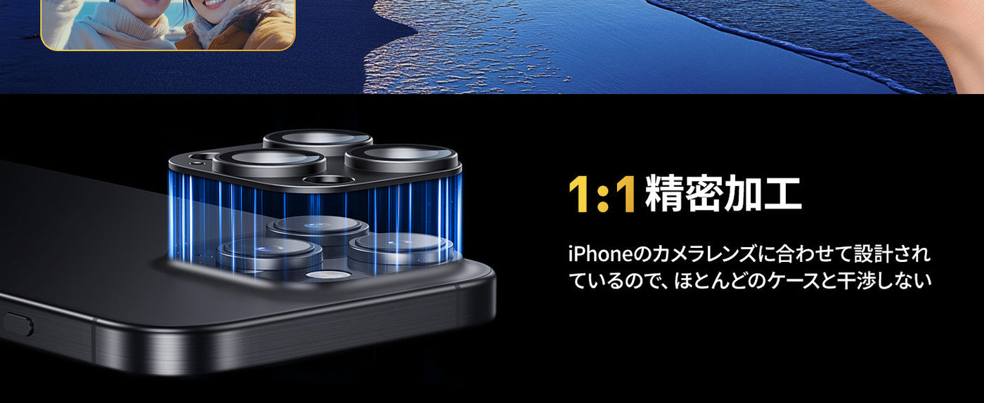 - 【iPhone本来の高画質を楽しむ】本製品はカメラ覆う部分に黒縁取りをした設計を使用しています。露出才一バ一を防ぎ、昼夜を問わず適度な明るさで画像を撮影できます。
