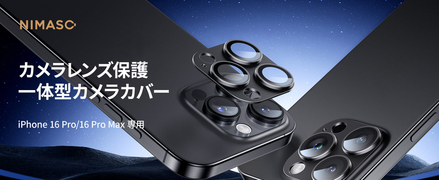 NIMASO iPhone 16/Plus/Pro/Pro Max用 カメラフィルム アルミ合金製+9Hガラス【2枚】