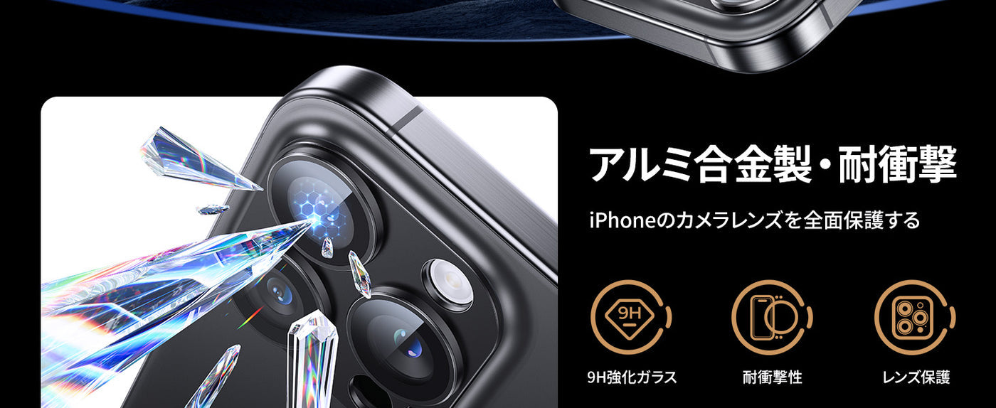 - 【アルミ合金製+強化ガラス・全面保護】レンズ部分は強化ガラス製で、9Hの超高硬度があり、レンズ全体を密着して保護します。鍵などの硬く尖ったものでもレンズが傷つかず、いPhoneをバッグやポケットの中に入れても安心です。レンズ周囲はアルミ合金製で衝撃に強く、飛散や割れをしっかり防止します。レンズ部周囲に0.18mmの段差をつけるデザィンが採用されており、カメラに直接衝撃が伝わりにくい構造です。