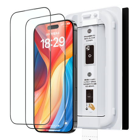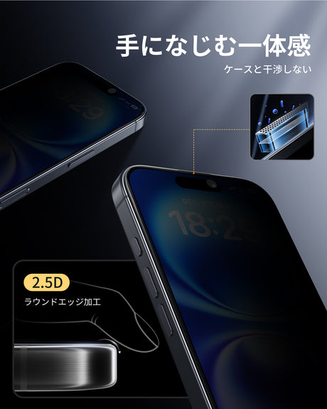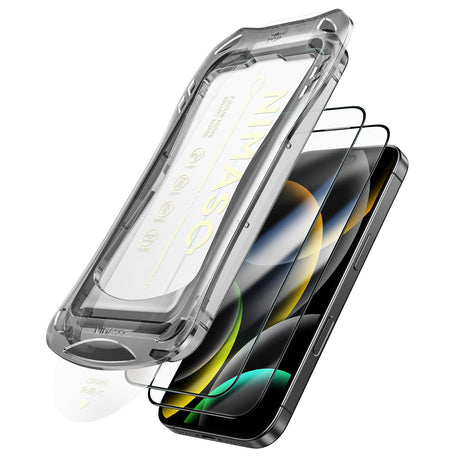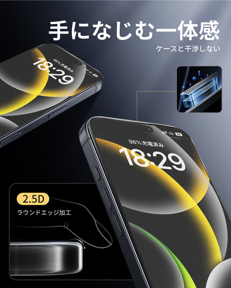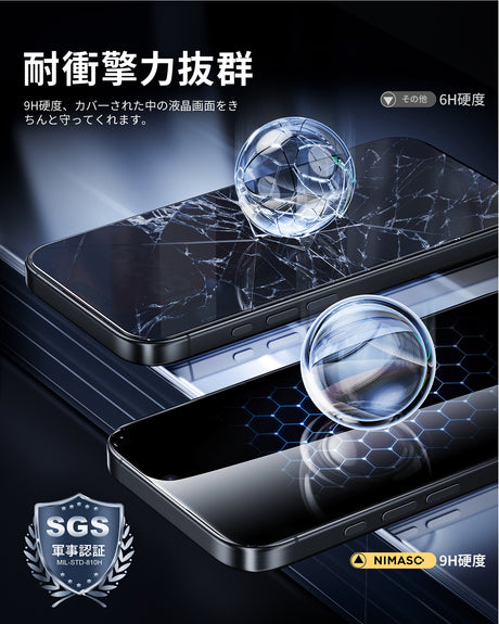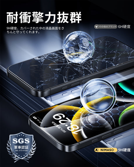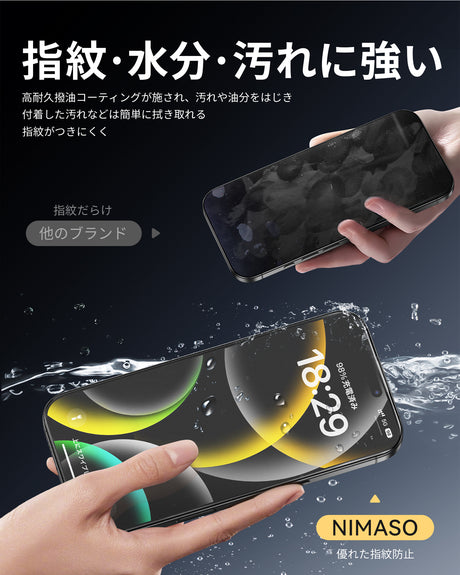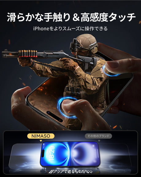 NIMASO iPhone 16/Pro/16 Pro Max 用 ブルーライトカット 強化ガラスフィルム 目の疲れ軽減 黒縁あり 自動除塵ガイド枠【2枚】