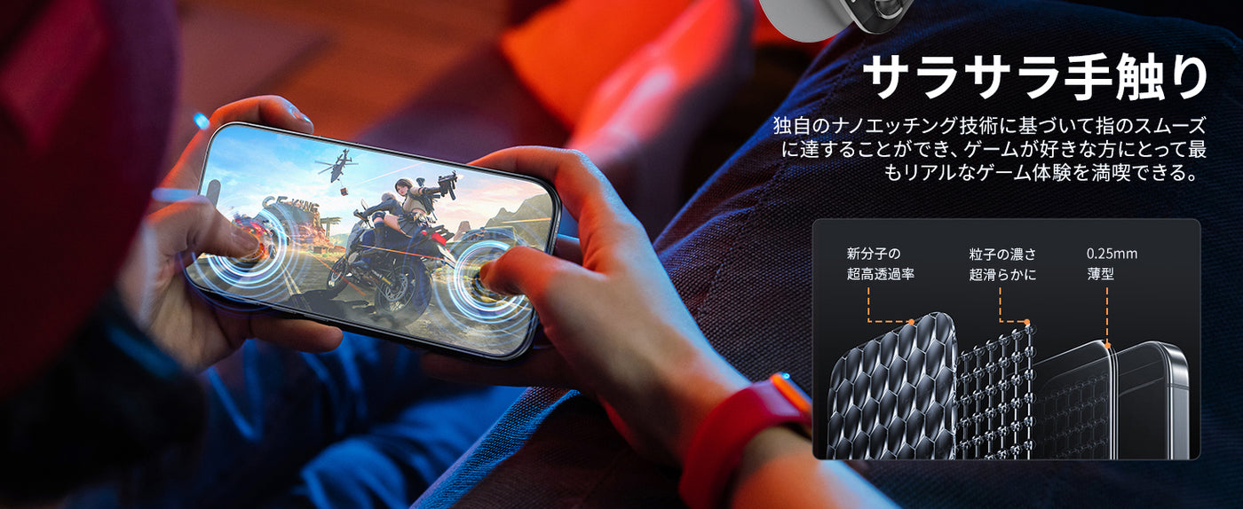 特殊なAF(Anti-Fingerprint)コーティングと撥油加工で、指紋や皮脂汚れが付きにくく、拭くだけで清潔に保てます。さらにスムースタッチ仕様により、動画視聴・SNS・ゲーム操作も快適。常に美しい画面を楽しめる iphone 16 フィルム 指紋 つか ない です。