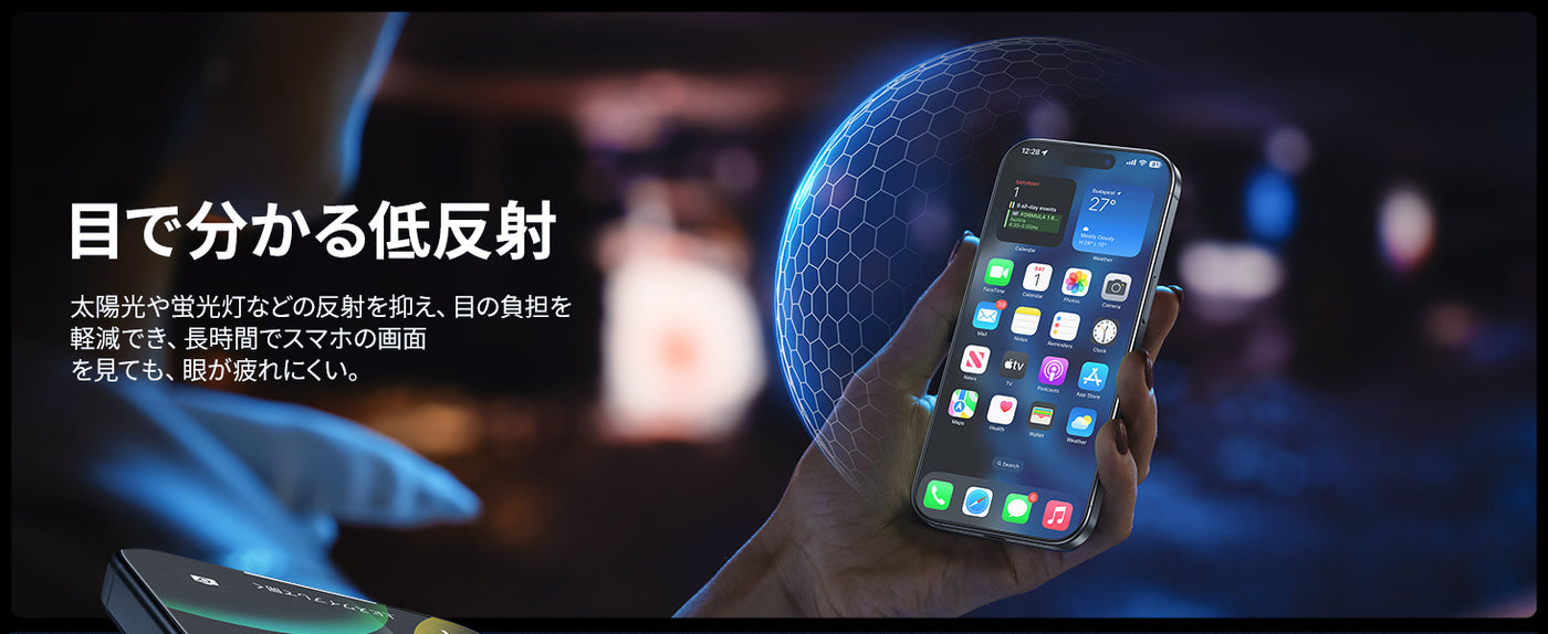 NIMASO独自の反射防止コーティングにより、太陽光や蛍光灯の映り込みを軽減。長時間の使用でも画面が見やすく、スマホ疲れ・眼精疲労対策 に最適です。ゲームや読書、テレワークにもおすすめの アンチグレア iPhone16 用ガラスフィルム。