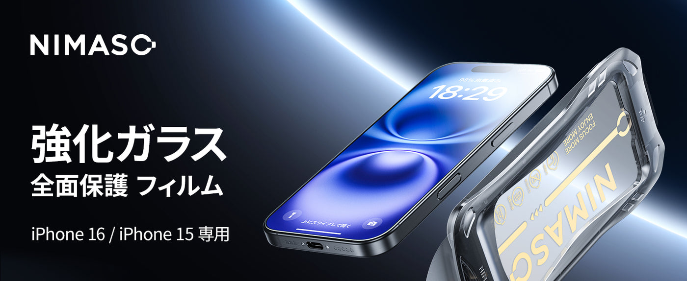 NIMASO iPhone 16/Plus/Pro/Pro Max用 強化ガラスフィルム 黒縁なし 自動除塵ガイド枠【2枚】