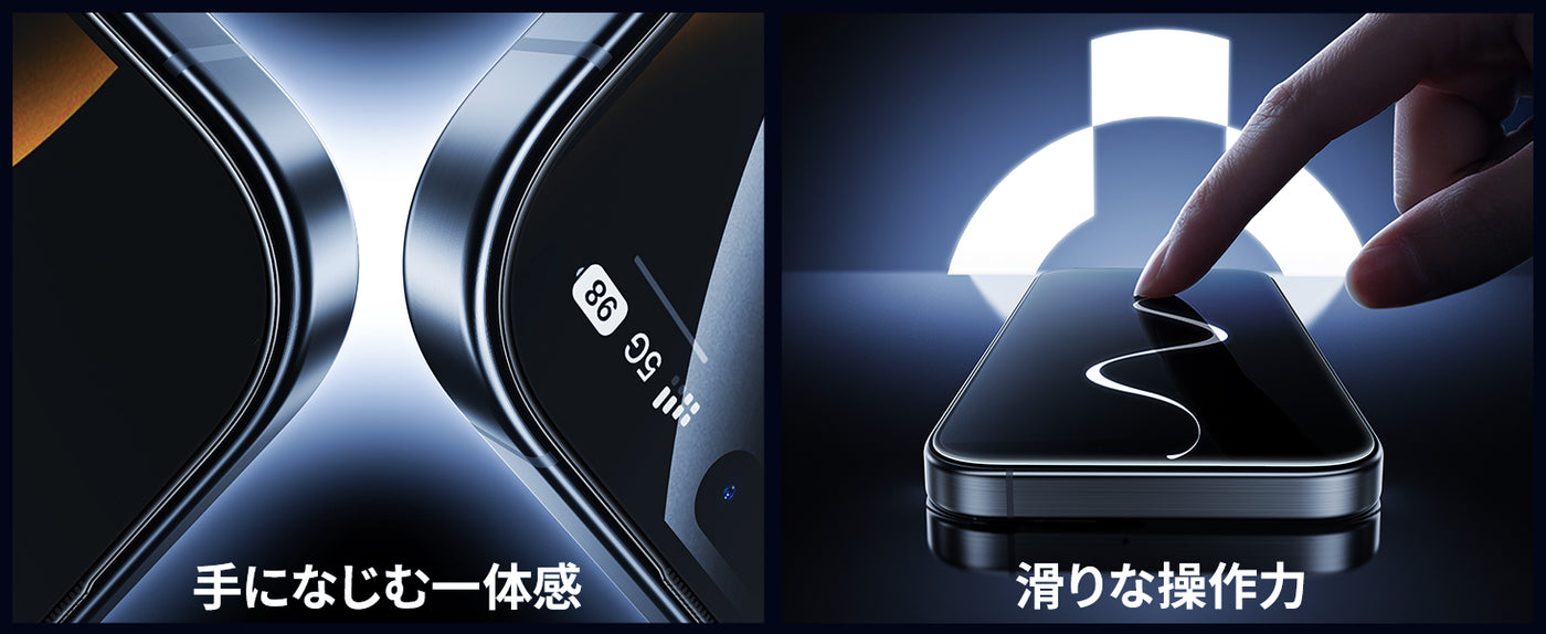 - 【高感度タッチ・99%透明度】厚みは約0.33mm。薄いため装着後の違和も少なく、タッチ感度も従来より向上しました。透明度が高く、画面そのままの美しさを保ちます。さらにガラスフィルムを貼っていないかのような触り心地です。