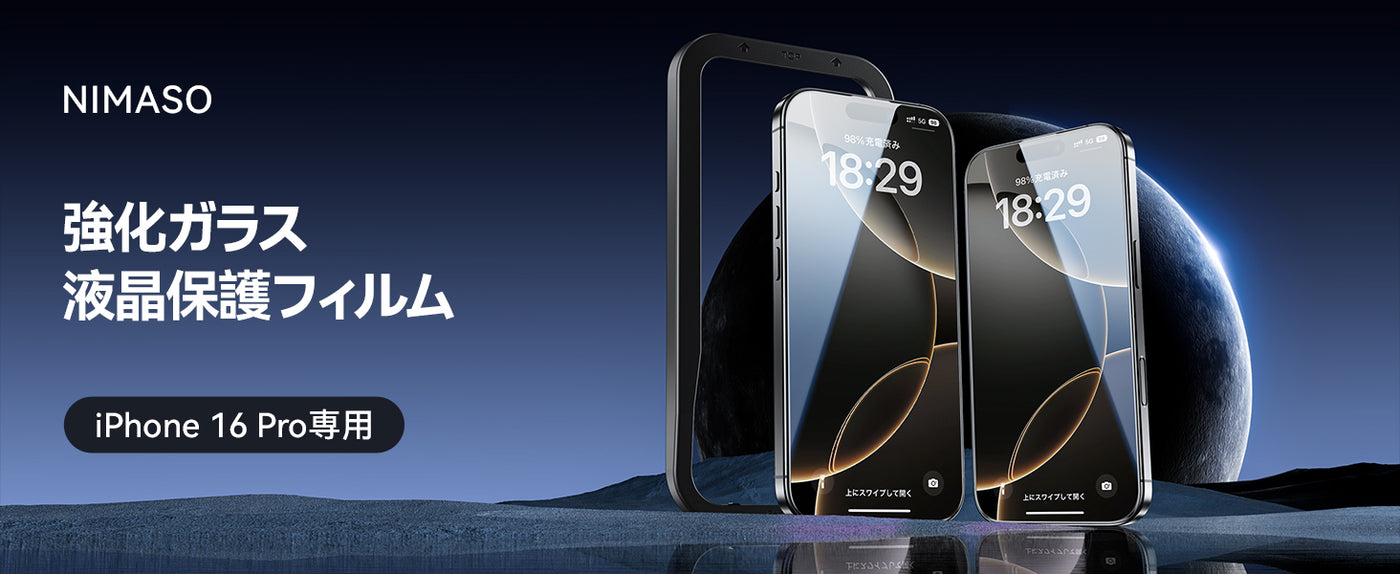NIMASO iPhone 16/Plus/Pro/Pro Max用 全面保護 黒縁あり 強化ガラスフィルム ガイド枠付き【2枚】