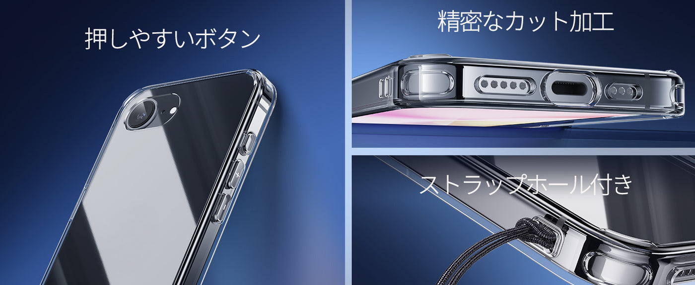 - 【細部まで保護】ケースは液晶画面より1.2mm高く、カメラレンズより1.5mm高く、ディスプレイやカメラレンズへのダメージを最低限まで抑えます。細部まで保護しており、安心感は抜群です。また、iphone 16e 用 ケースに付いているストラップホールにストラップをつければ、紛失や落下を防ぐことができます。