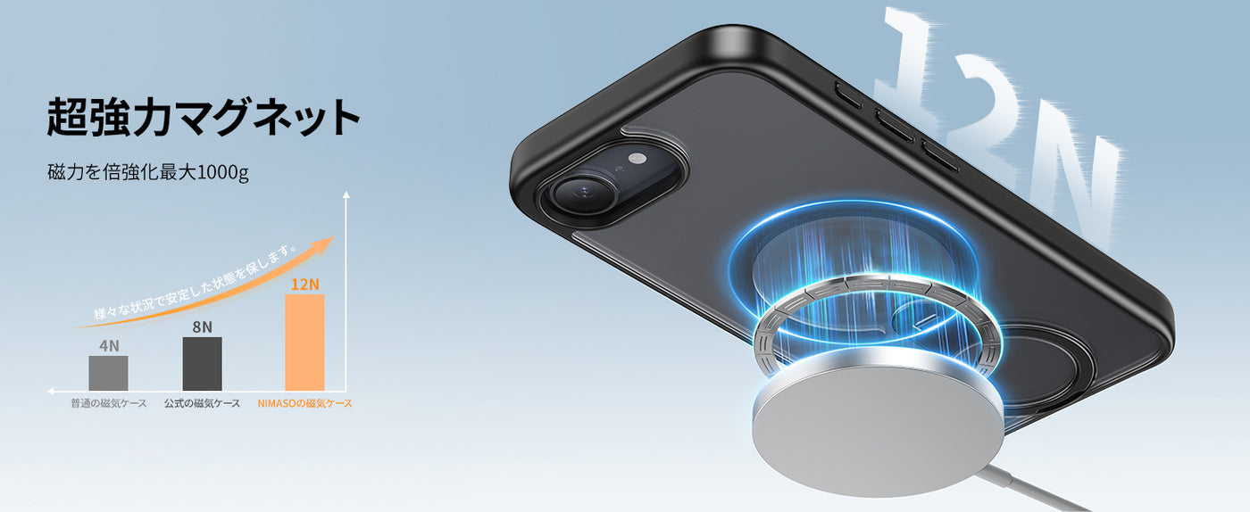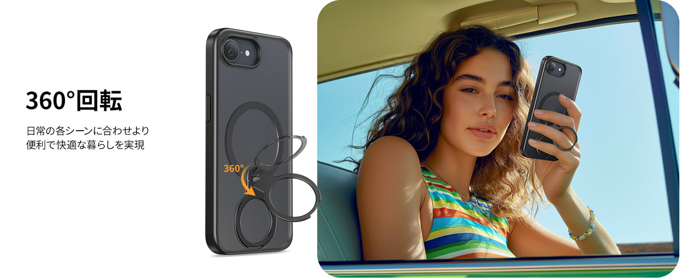 NIMASO iPhone 16eケース 360°回転リングスタンド MagSafeアクセサリー対応(アップグレード版)