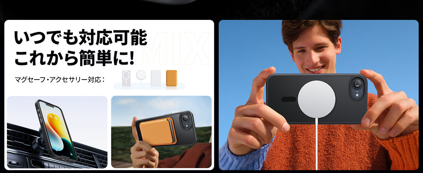 - 【より強力なマグネットロック】1000gの保持力を持つ強力な磁気リングは、MagSafeに対応しており、より速く、より簡単な瞬間吸着ワイヤレス充電および、あらゆるMagSafeアクセサリーへ磁気吸着を可能にします。このiphone 16e ケースは、iphone 16e magsafeアクセサリーを使用する方に最適です。