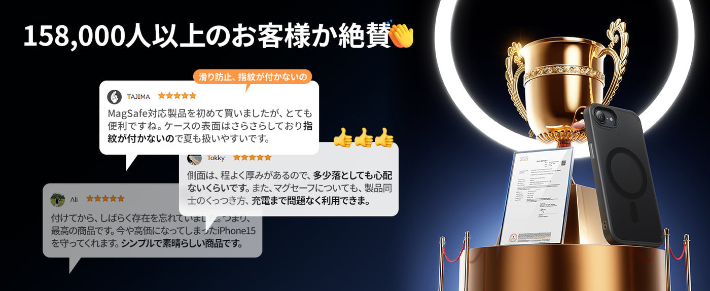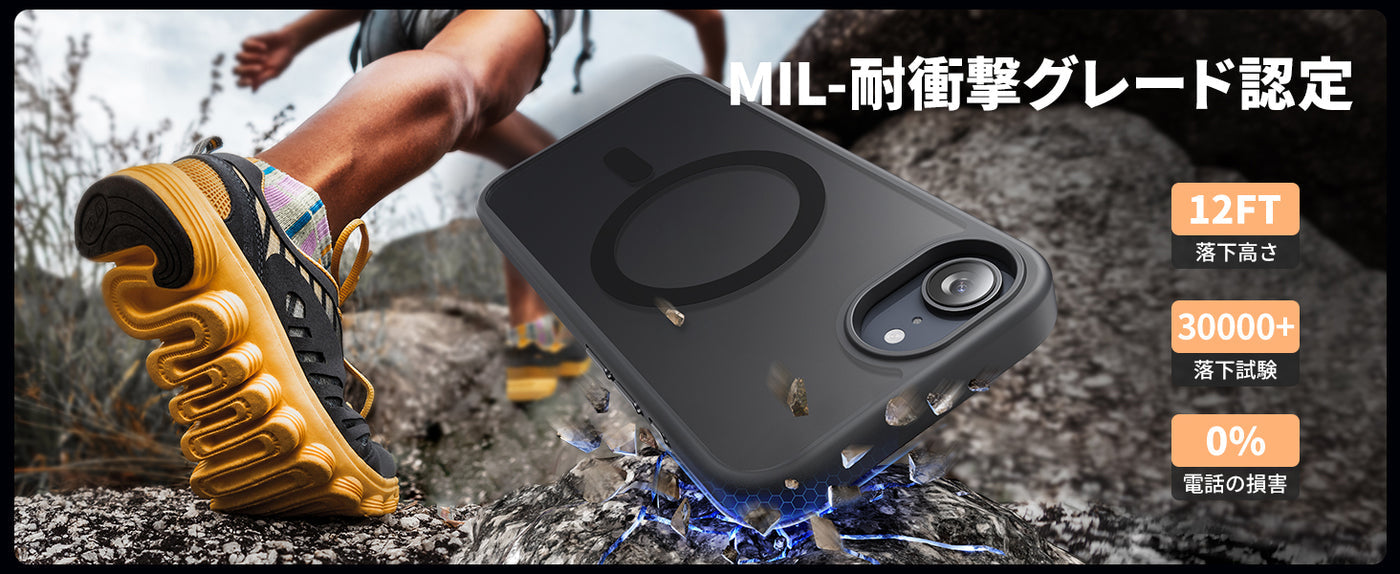 - 【米軍規格SGS認証・超強耐衝撃性】世界で有名な米国防総省が規定する米軍採用品規格「MIL-STD-810H」認証を取得済みです(認証番号:GZMR220802496801)。コンクリートの地面に厚さ5mmの合板を敷き、高さ1.2mから合計26回、違う角度から落下させる実験をしましたが、本体に傷はつきませんでした。カバーの縁はアイフォン16eの画面より0.9mm高く、カメラレンズより1.4mm高い仕様です。併用の保護ガラスフィルムで平置きしても画面は接触しません。細部までの保護も配慮され、より一層な安心感を与えられます。