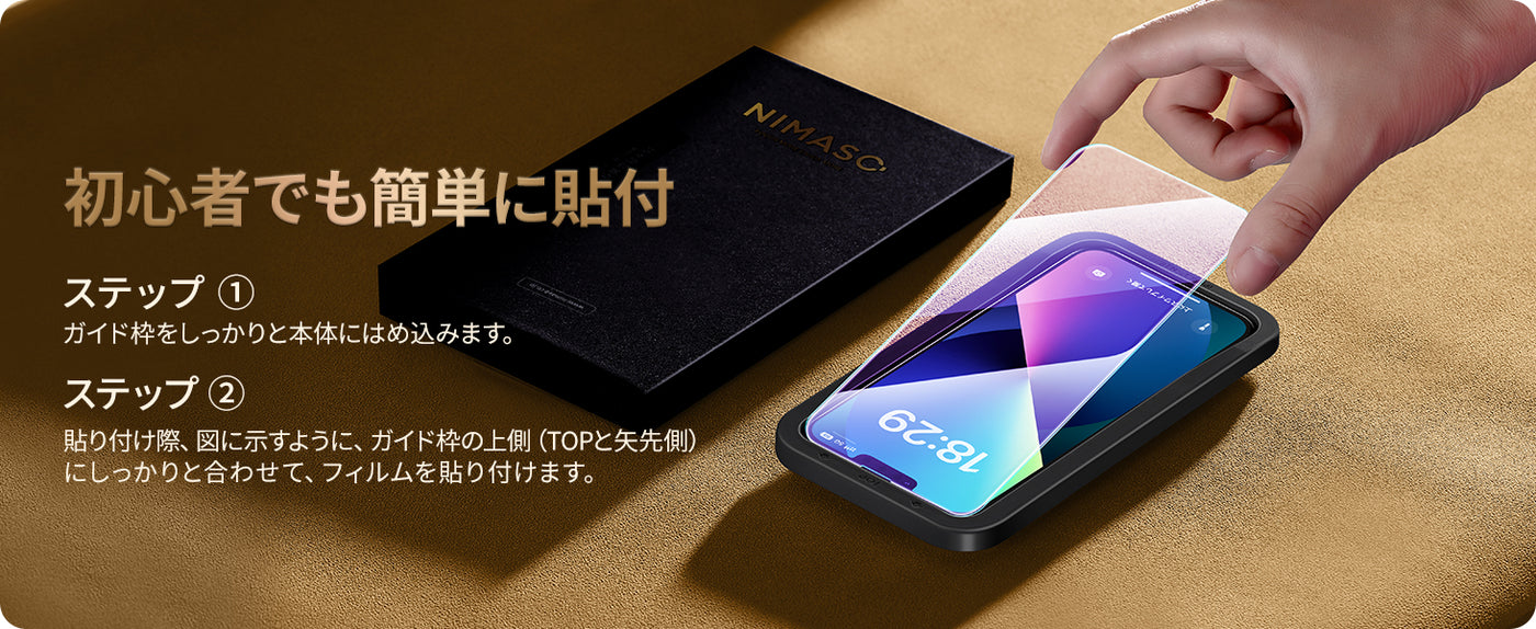 NIMASO iPhone 16e/14/13 Pro/13 ブルーライトカット 強化ガラスフィルム 目の疲れ軽減 ガイド枠付き【2枚】 - iPhone 16e/14/13/13 Pro ...は取り寄せ中で入荷次第発送します。