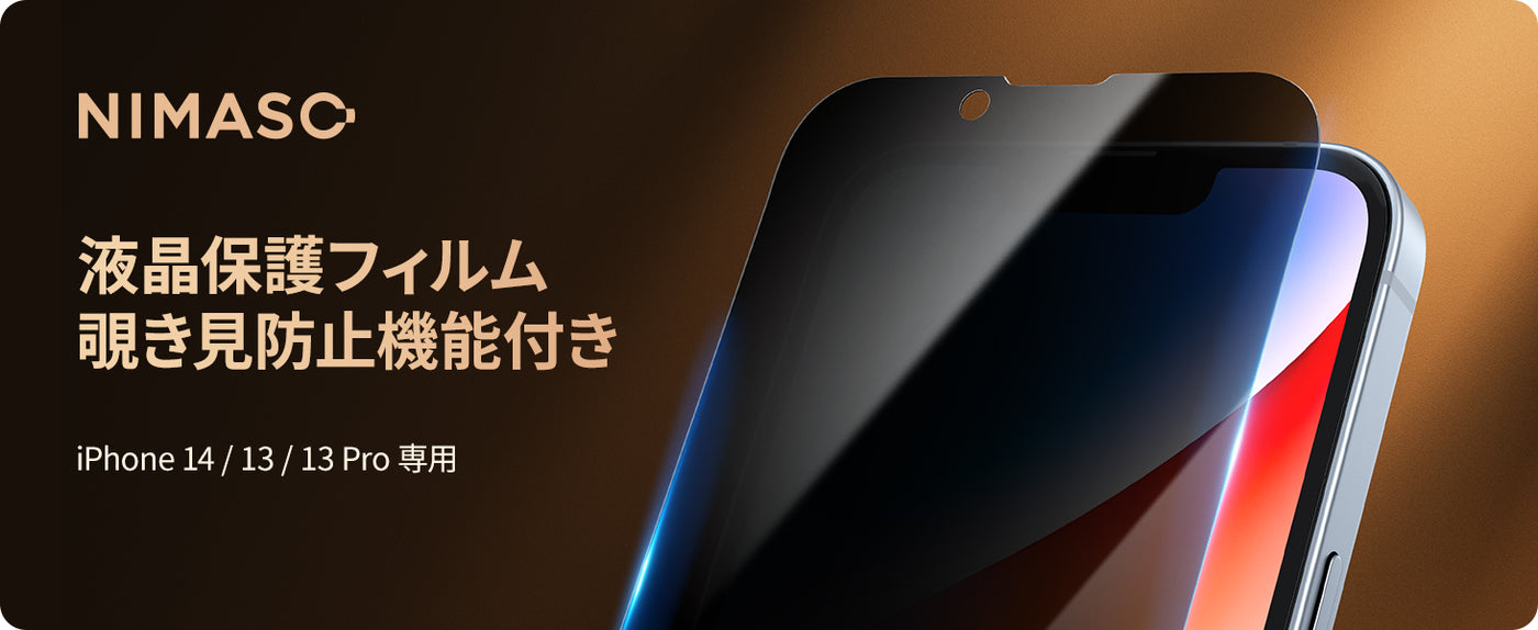 NIMASO iPhone 16e/14/13 Pro/13 覗き見防止 ガラスフィルム プライバシー保護 ガイド枠付き【2枚】