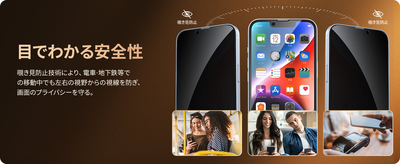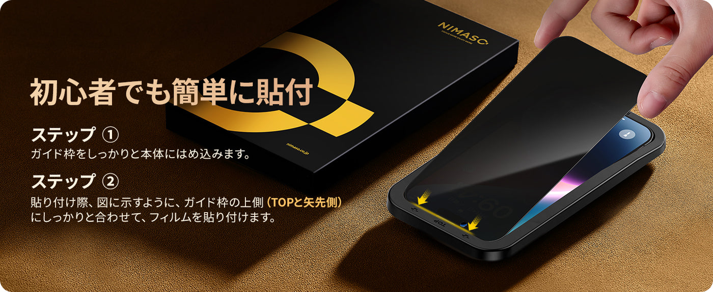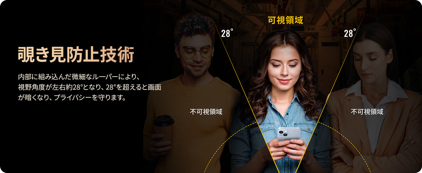 覗き見防止|9H硬度|プライバシーを守り|失敗なし|指紋防止|気泡ゼロ|耐衝撃|ガイド枠付き|簡単貼り付け|飛散防止