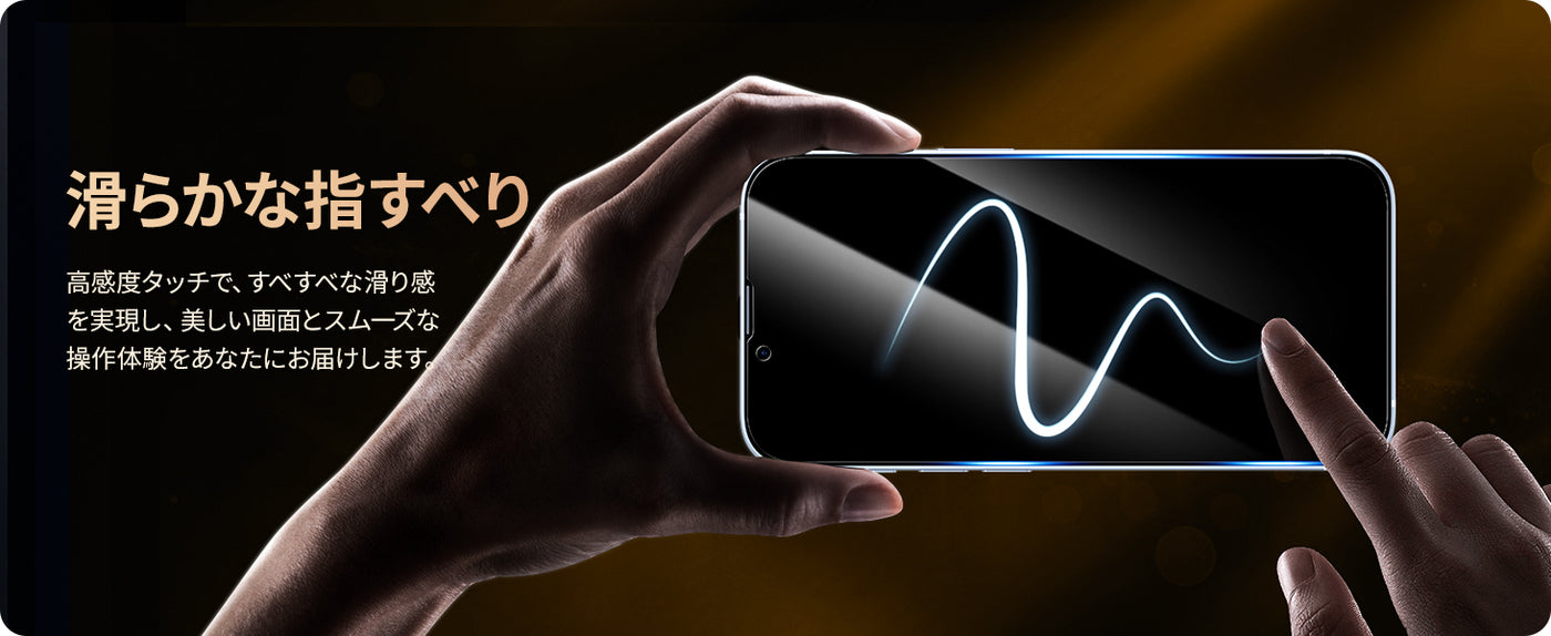 • 【ラウンドエッジ加工】縁にラウンドエッジ加工が施されており、引っかかりを感じることなく、スムーズに操作できます。本体画面さながらの一体感が生み出されます。